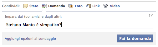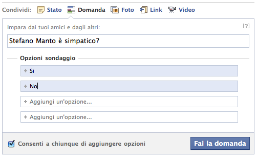 sondaggi su Facebook sottoponendo una Domanda specifica ai vostri amici. Il sistema consente infatti, in modo molto semplice, di