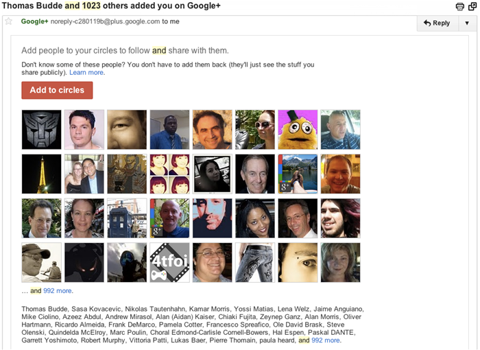 Se abilitato nelle impostazione, Google+ notifica con una mail le persone che ci hanno aggiunto nelle proprie cerchie nelle ultime ore.