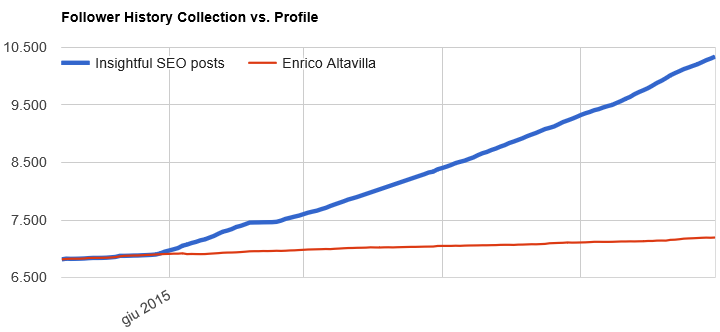la raccolta ha 14 follower mentre lui ne ha più di 9 mila.